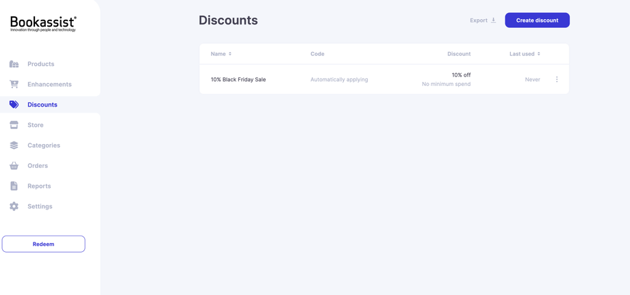 After you have made a discount, the page will display a list of your active and draft discounts.