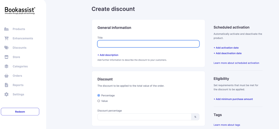 - Add description - This is optional but allows you to add further informationt to describe the discount to your customers.