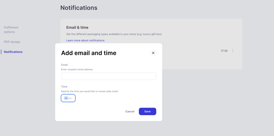 Enter an email address and select the time for your daily email to be sent. You can add multiple emails to be notified but they must be set up one at a time.