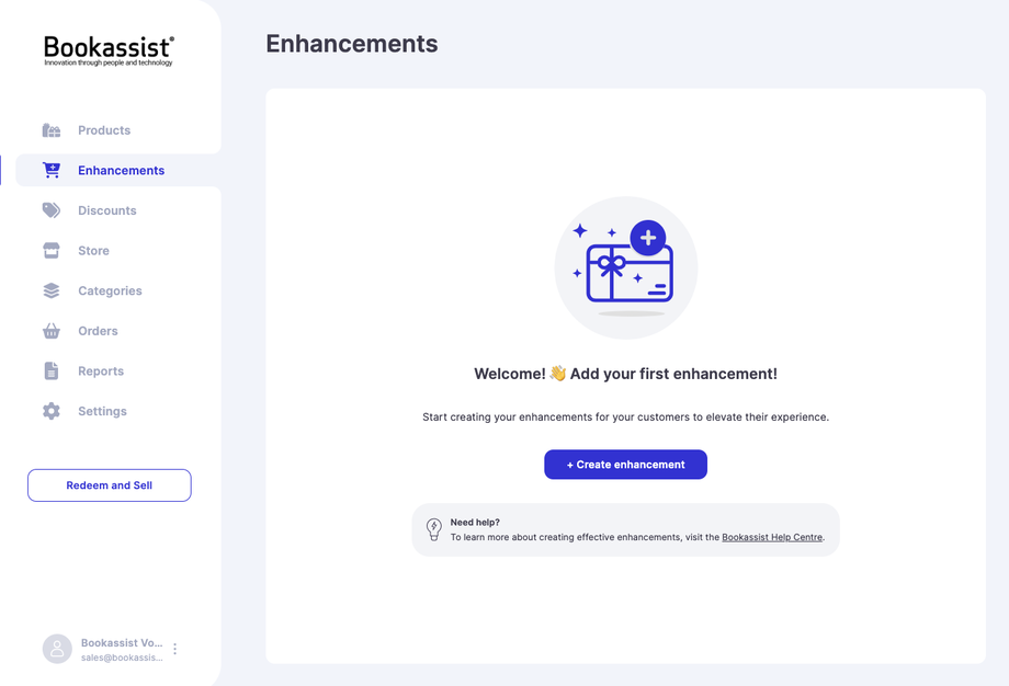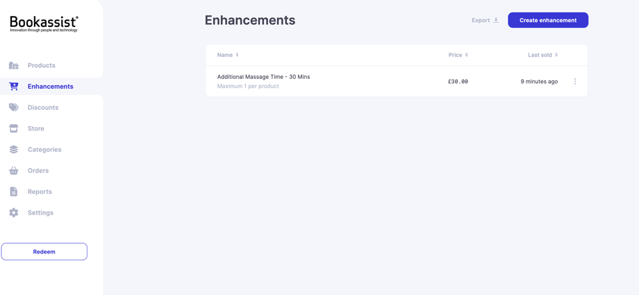 Enhancements can be added by clicking on enhancements on the side menu. When you make your first enhancement you will be met with the following screen: