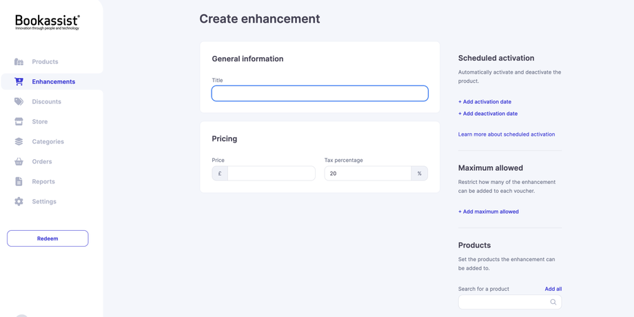 - Maximum allowed - Restrict how many of the enhancement can be added to each voucher