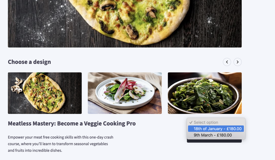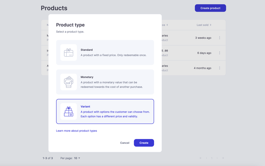 Our voucher system allows you to create products which have multiple versions or variants of itself.