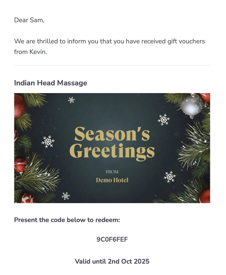 Step 3: This image will now be displayed on the voucher email or postal voucher which gets sent out to the customer, allowing them to add further context to their gift.