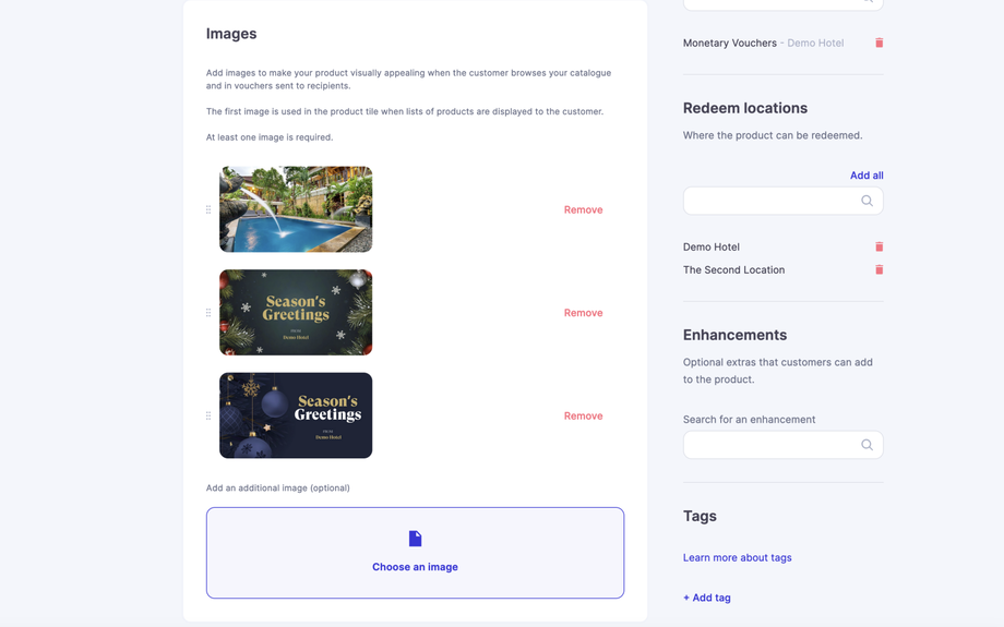 In essence this allows customers to add additional context to their voucher, they can pick a product image, an image of the business or some branded seasonal / special occasional images like Christmas or Anniversaries.