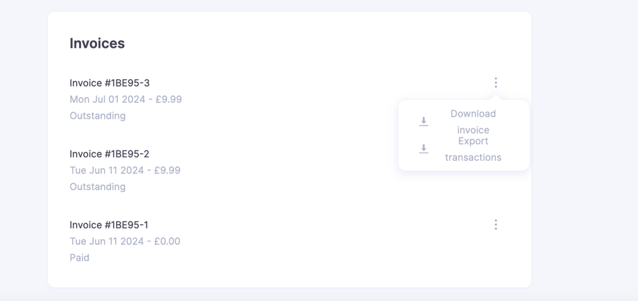 The final section in the billing section is a history of all of your past invoices, which can be viewed and downloaded.