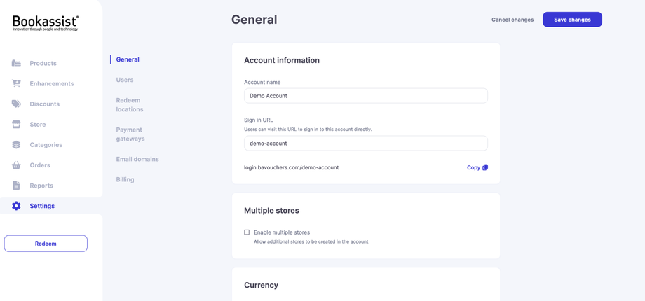 - Currency - here you can set the default store currency and enable multiple currencies across the store, this option will allow you to set a currency on each product, enhancement and store to use a different currency. This feature is designed for larger multinational customers and should not be switched on unless you operate across multiple countries and currencies.