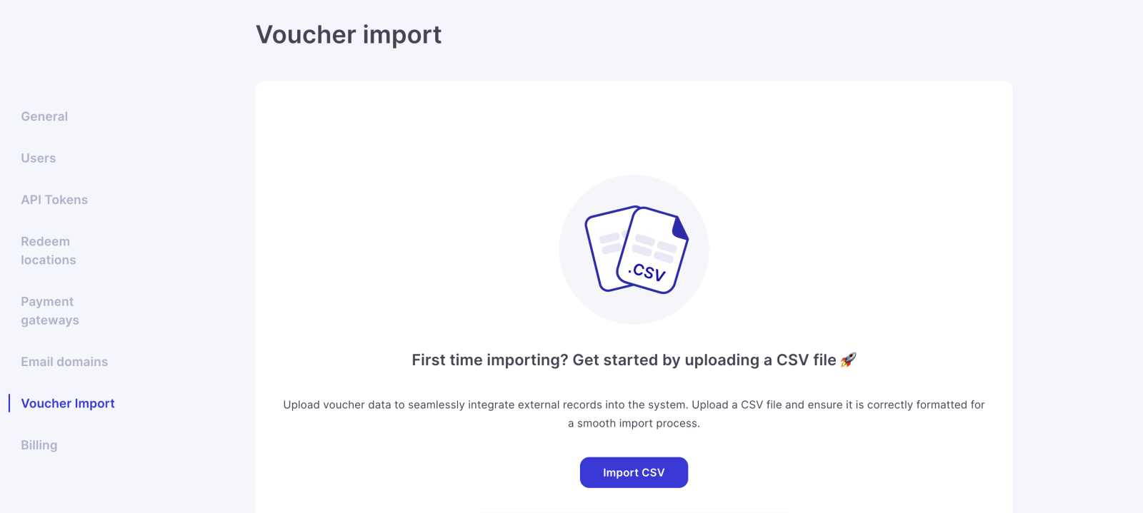 You can use the Voucher Importer to bring vouchers from other systems such as third-party providers or offline sales into your account. This helps you manage all redemptions in one place, even if the vouchers weren’t originally sold through our platform.