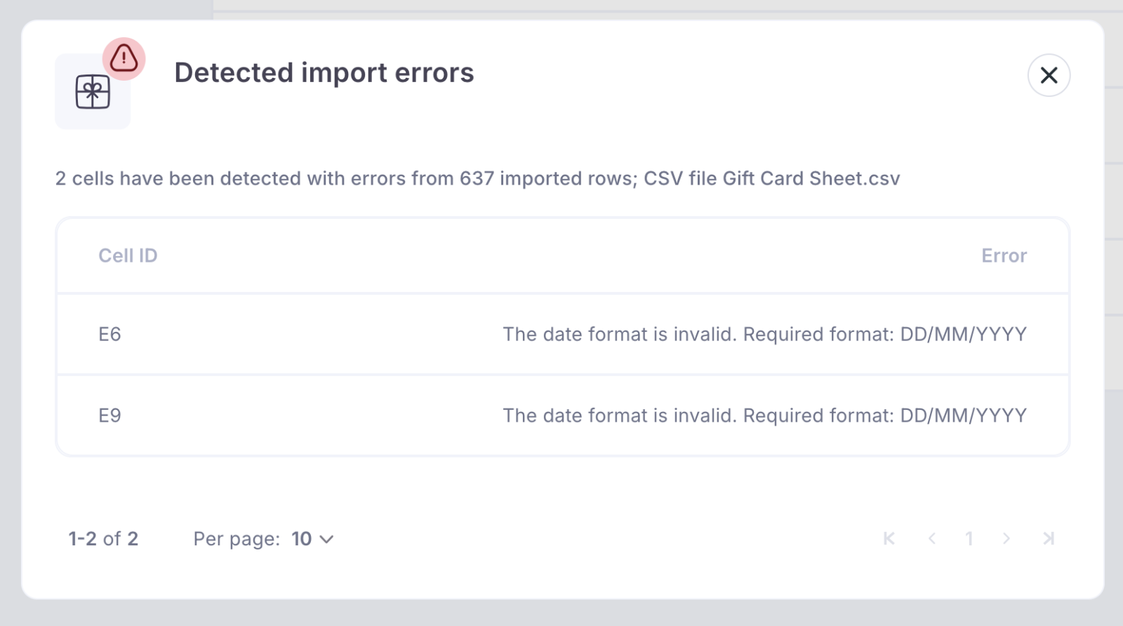 You can now see exactly which fields contain errors, giving you the chance to correct them in your CSV file and re-upload it.